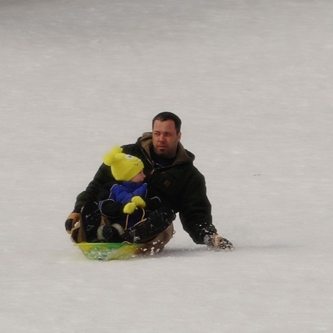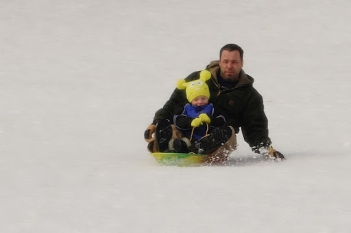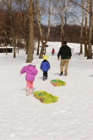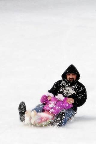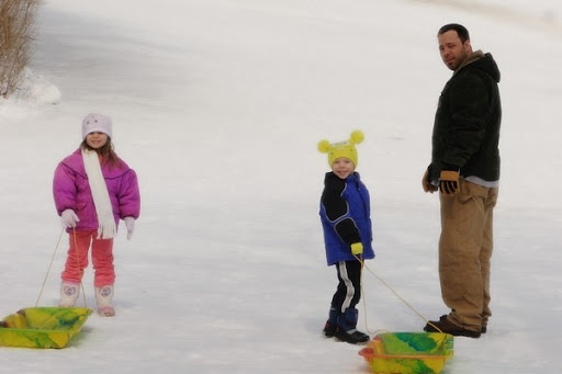 After that we all bundled up and went to the park for some sled riding. It was such a nice day, not to cold, just cold enough. I brought my camera of coarse so I got some great pictures of my brother and Tom (my husband) going down the hill with the kids and also some of the scenery. Tom is very tall and he had a lot of trouble keeping his feet in the sled so he was kicking up tons of snow which all landed right in Nadia's (5) face! When they went back up the hill she made in cover her whole face, eyes and all with her scarf. Now that takes guts! Its bad enough to go down the hill and not have much control, but she did it blindfolded! Silly girl!